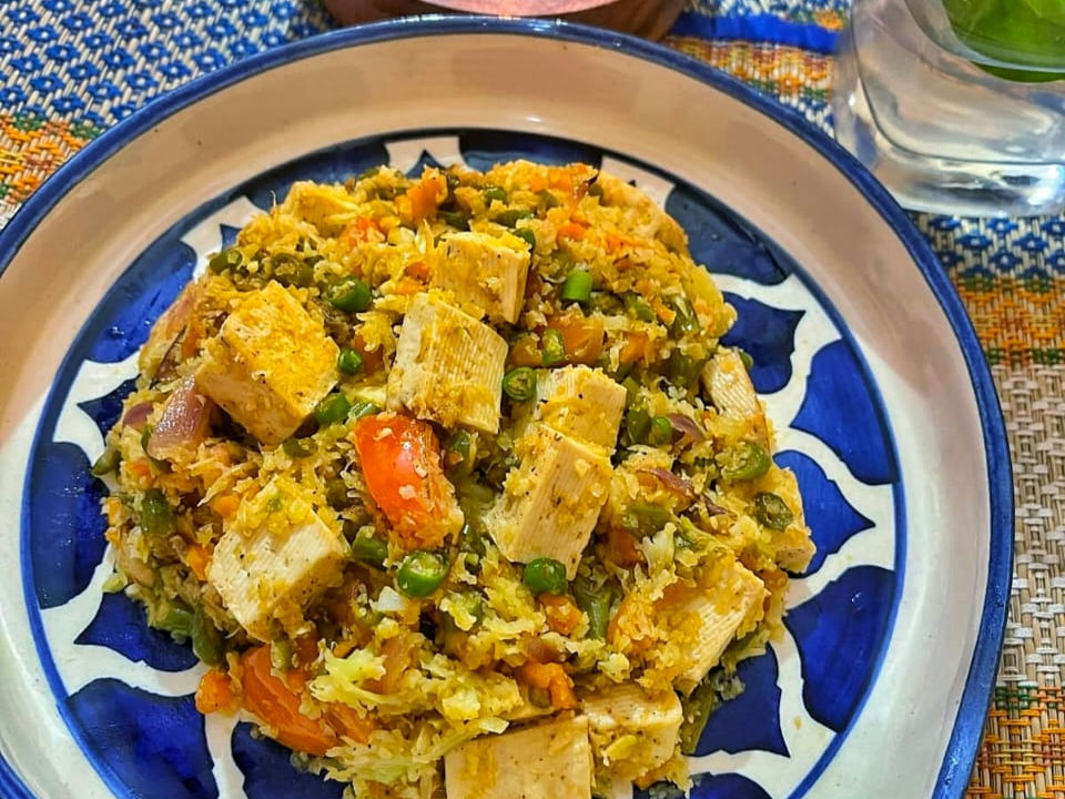 লো কার্ব টোফু ফ্রায়েড রাইস উইথ আ টুইস্ট