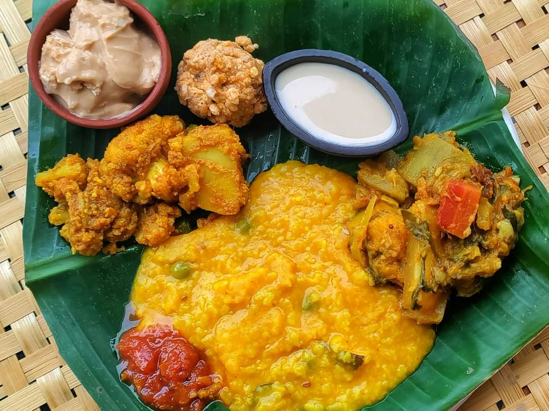 গোবিন্দভোগ চাল, মুগডাল, সাদা তেল, গাওয়া ঘি, আদা বাটা, জিরা বাটা, নুন, হলুদ গুঁড়ো, চেরা কাঁচালঙ্কা, চিনি, জয়িত্রি জায়ফল গুঁড়ো, এলাচ বাটা, নারকেল কোরা, কড়াইশুঁটি, তেজপাতা, শুকনো লঙ্কা, সাদা জিরে