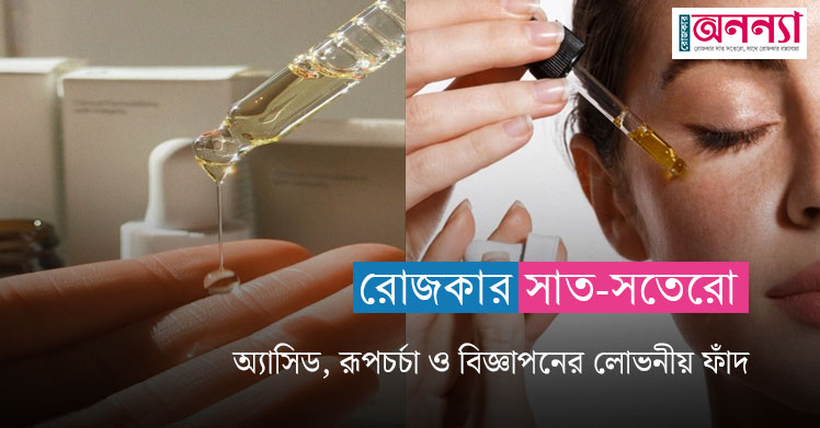 এই রকম ডায়লগ এখন ফেসবুক-ইনস্টাগ্রাম খুললেই চোখে পড়ে। ইউটিউবে হাজারো স্কিন ইনফ্লুয়েন্সার রোজই শিখিয়ে দিচ্ছেন কীভাবে AHA, BHA, Lactic Acid, Kojic Acid ব্যবহার করলে ত্বক হবে নিখুঁত। কিন্তু প্রশ্ন উঠছে এই অ্যাসিডগুলো কি সবাই ব্যবহার করতে পারেন? নাকি সৌন্দর্যের ছদ্মবেশে এগুলো একটি স্লো পোয়জন? অ্যাসিড শব্দটা শুনলেই ভয়! কিন্তু... প্রথমেই পরিষ্কার করা দরকার সব অ্যাসিড ক্ষতিকর নয়। অনেক অ্যাসিড চিকিৎসাবিজ্ঞানের দৃষ্টিতে কার্যকর, যেমন: