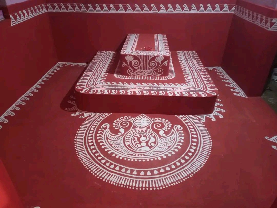 সিঁদুর খেলা: বিজয়ার দিনে সিঁদুর খেলার জায়গা আলপনা দিয়ে সাজানো হয়, যাতে স্থানটি আরও শুভ হয়ে ওঠে।