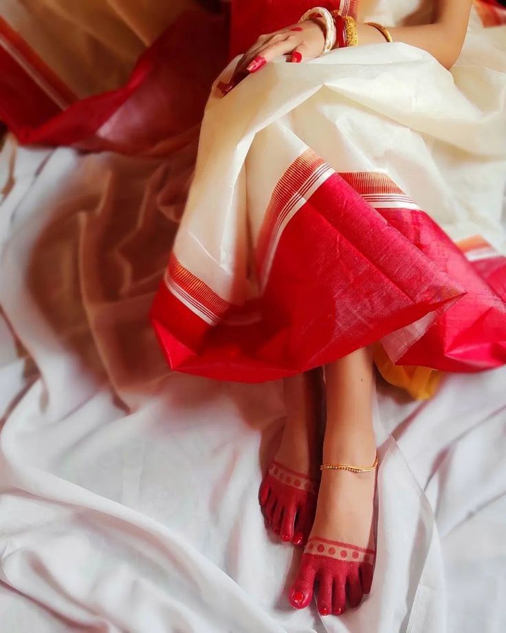 আপনি কি আলতা পরেছেন আজ? যদি না পরেন, তবে এই পুজোয় একবার পায়ে লাল আলতা মেখে দেখুন নিজেকে একটু অন্যভাবে চিনতে পারবেন। কারণ, প্রতিটি রাঙা পা মানেই একেকটি শক্তির প্রতিচ্ছবি..